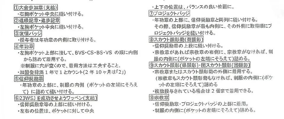 正式なものではないかもしれませんが、奉仕参加するスカウトの記章類の着用統一には欠かせません。