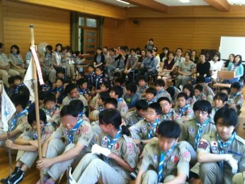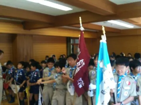 入隊上進式 2014 管理人のひとり言 2014.09.212024.09.13 管理人 2014年の入隊上進式の様子です。 今日はボーイスカウト豊中20団の入隊上進式。団委員長が欠席のため、私が代行。 いつの間に、こんなにスカウトが!ビーバー隊は10人。(目算)カブ隊が21人。ボーイ隊は27人。ベンチャー隊は8人。ローバー隊1名。 特にBS隊は4班になってる!つまり、標準隊に限りなく近い。標準隊というのは、1班8名で4班体制をいう。人数が増えると友達が友達を呼ぶのだろう。ビーバー隊の頑張りもすごい。活気が溢れている。 今年も元気に楽しく活動しよう!
