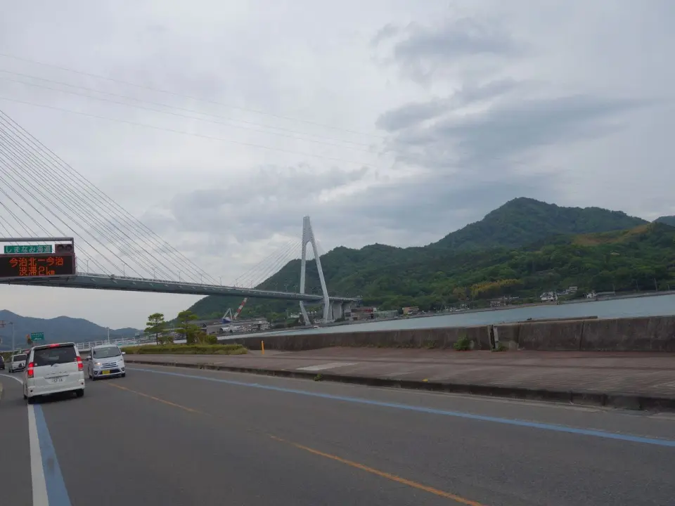 朝一番で身近島キャンプ場を出発し、宮窪から来島海峡大橋を渡り、今治市まで。