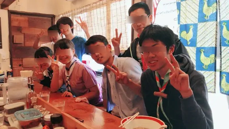 スカウト達は目当ての尾道ラーメン店の長蛇の列に並んでいたが、まだ食せずにいた。