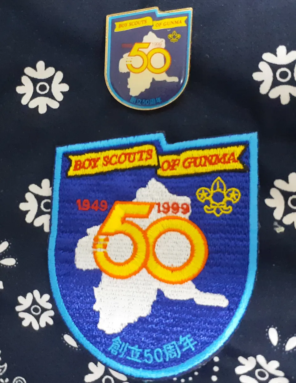 【ネッカチーフ】群馬県連盟 ネッカチーフ 2023.10.032025.07.29 太田第3団 小金井4団 奈良英宏 氏 所有 渋川第2団 小金井4団 奈良英宏 氏 所有 前橋第7団 小金井4団 奈良英宏 氏 所有 桐生第17団 小金井4団 奈良英宏 氏 所有 桐生地区BP祭 桐生地区BP祭のワッペンです。小金井4団 奈良英宏 氏 所有 邑楽町第1団 小金井4団 奈良英宏 氏 所有 桐生第22団 桐生第22団のチーフとワッペンです。チーフが無地なのでスカウト達が思い思いのワッペンを付けるそうです。小金井4団 奈良英宏 氏 所有 太田第5団 小金井4団 奈良英宏 氏 所有 前橋第15団 小金井4団 奈良英宏 氏 所有 松井田第1団 小金井4団 奈良英宏 氏 所有 玉村町第1団 現在は廃団小金井4団 奈良英宏 氏 所有 群馬町第1団 小金井4団 奈良英宏 氏 所有 高崎第8団 小金井4団 奈良英宏 氏 所有 高崎第17団 小金井4団 奈良英宏 氏 所有 高崎第22団 チーフとリングです。高崎には達磨が付きものです。小金井4団 奈良英宏 氏 所有 高崎第18団 小金井4団 奈良英宏 氏 所有 群馬県連盟章 2014年ゆるキャラグランプリで一位になった「ぐんまちゃん」に制服を着てもらい、群馬県のシルエットを配置。群馬のスカウトであることをアピールできるようにしました。小金井4団 奈良英宏 氏 所有 前橋第4団 上毛三山群馬県にある赤城山、榛名山妙義山の3つの総称で県のシンボルとして県民に親しまれ日本百名山に数えられています。中央にその三山を刺繍で表しています。小金井4団 奈良英宏 氏 所有 群馬県連盟オリジナルチーフ 群馬県の県旗をデザインとして取り入れているようです。紫の地色は文化の栄えをあらわし、3つの月形は上毛三山をあらわします。中央の「群」は県民の和をあらわしています。(群馬県のサイトより引用)小金井4団 奈良英宏 氏 所有 第14回群馬カブラリー 第14回群馬カブラリーのワッペンです。小金井4団 奈良英宏 氏 所有 第29回群馬キャンポリー 2022年に開催された第29回群馬キャンポリーのワッペンです。小金井4団 奈良英宏 氏 所有 群馬県連盟創立50周年記念 小金井4団 奈良英宏 氏 所有 群馬第15団ベンチャー隊 群馬第15団ベンチャー隊のち0付です。小金井4団 奈良英宏 氏 所有 前橋第1団50周年記念 前橋第1団50周年記念チーフです。小金井4団 奈良英宏 氏 所有 前橋第1団 右:県行事に使うチーフです。団名のグリーンは団のシンボルカラーです。左:前橋第1団のチーフです。隊名の色で別れています。銀色はローバー、赤色はベンチャー、黄色はカブ、白色はボーイ、水色はビーバーです。小金井4団 奈良英宏 氏 所有 第1回関東キャンポリー 第1回関東キャンポリーのチーフです。小金井4団 奈良英宏 氏 所有 第4回関東キャンポリー 第4回関東キャンポリーのチーフ、ワッペン、ピンバッジです。小金井4団 奈良英宏 氏 所有