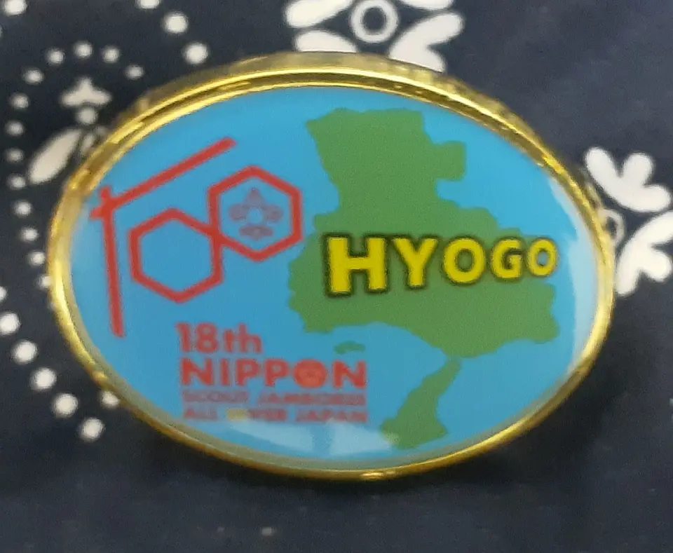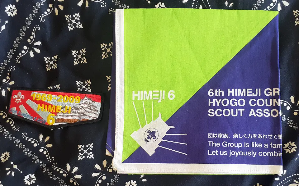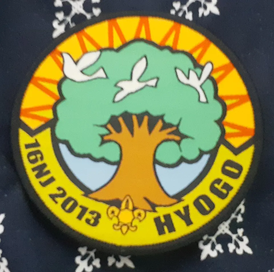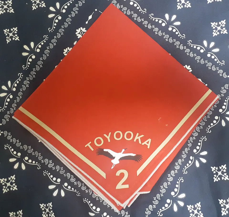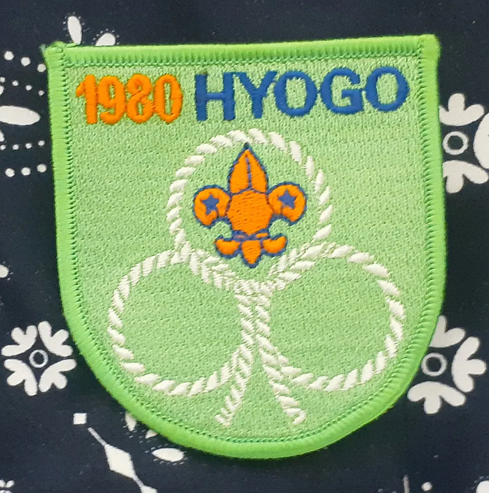 豊岡第2団のチーフです。図柄の鳥は国の特別天然記念物のコウノトリを表し、兵庫の県鳥でもあるコウノトリの日本最後の生息地、豊岡市にある「兵庫県コウノトリの郷公園」で野生に復帰させる試みと保護や増殖に取り組んでおります。小金井4団 奈良英宏 氏 所有