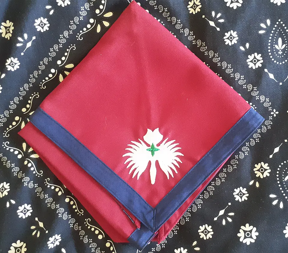伊丹10団ビーバー隊のオリジナルのネッカチです。エンジ色でビーバーが書いてあります。」伊丹10団BVS副長 アイブリさん所有