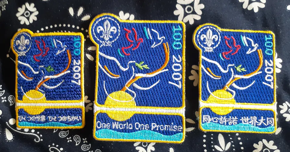 2001年3月28日から4月1日に開催された日米友愛ジャンボレットで同時開催されたネッカチーフです。真中の文字は「プラスアルトラ!共に進もう 千年紀」と刺繍されています。